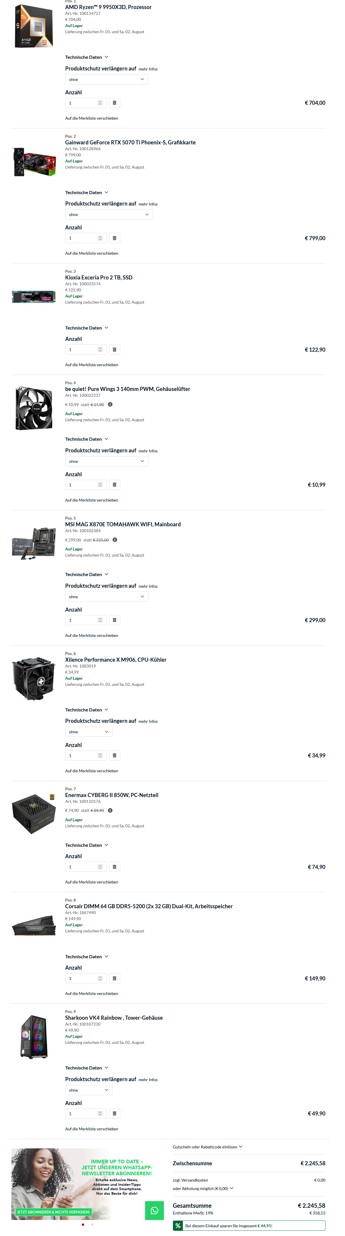Daher würde ich gerne eure Meinung hören, ob mein geplantes Setup sinnvoll und leistungsfähig genug ist oder ob ich bestimmte Komponenten besser austauschen sollte. Außerdem interessiert mich, ob es auch günstigere Alternativen gäbe, die für meine Anforderungen trotzdem ausreichen würden. (Siehe Screenshot)