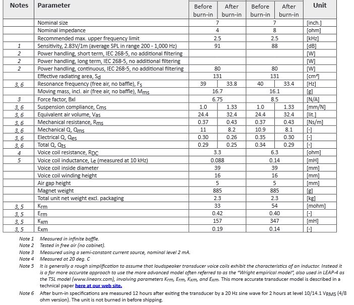Auszug aus den Messbedingungen eines anderen Herstellers:6Thiele-Small parameters are measured after 2 hour exercise period using an 600 W AES
