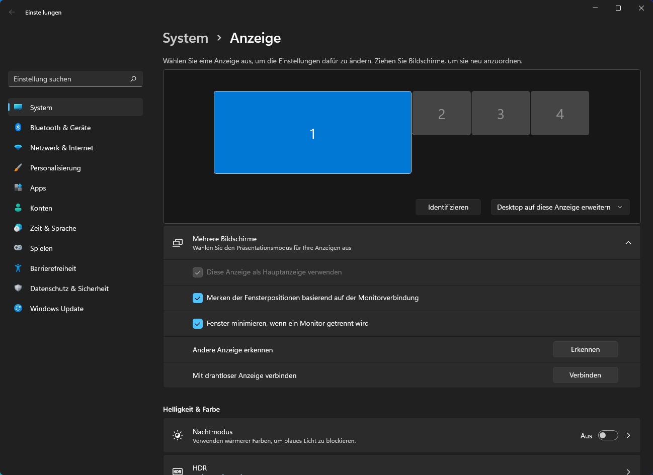 Ich habe mehrere Ausgabegeräte, die alle mit meinem PC (besser gesagt einer RTX 3080) verbunden sind. (2 Monitore am Schreibtisch, ein Fernseher im SZ und ein Fernseher im Wohnzimmer). Leider macht der LG B9 im Wohnzimmer einige Probleme in dieser Konstellation. Sobald der Fernseher in den Standby geht, wird der nach einem Neustart oder längerer Zeit im Standby nicht mehr von Windows 11 erkannt bzw. lässt sich nicht mehr als Monitor einrichten (In der Nvidia Systemsteuerung taucht er auch nicht mehr auf). Erst wenn ich den Fernseher wieder aus dem Standby wecke, kann ich meinen Desktop auf diese Anzeige erweitern.