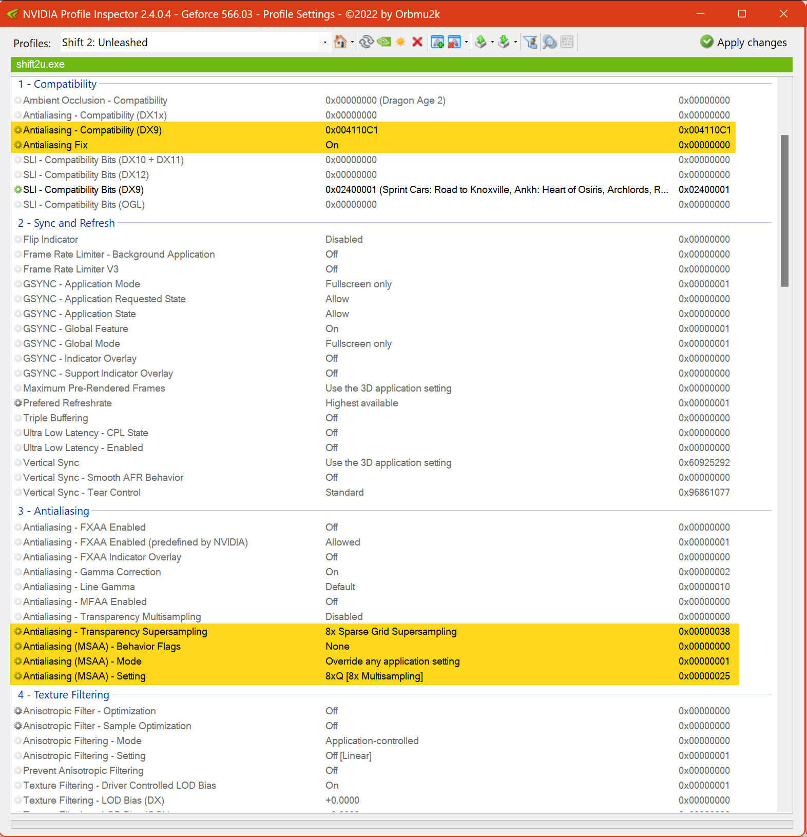 (Antialiasing Compatibility, Behaviour Flags und Antisotropic Filtering mode finde ich nicht so bei mir - Alternativen?)