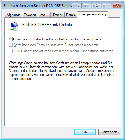 an meinem Rechner existiert seit gestern folgendes Problem. Ich habe den neusten Realtek Treiber installiert. Seitdem kann ich den PC nicht mehr aus dem Ruhezustand per WOL holen. Wenn er heruntergefahren ist geht WOL ohne Probleme. In den Eigenschaften des Adapters habe ich "Bei Magic Paket aufwecken aktiviert". "Green Ethernet" und "Energy Efficient Ethernet" habe ich auf Deaktiviert stehen. Ich habe folgendes Motherboard "Asus P8H77-I"