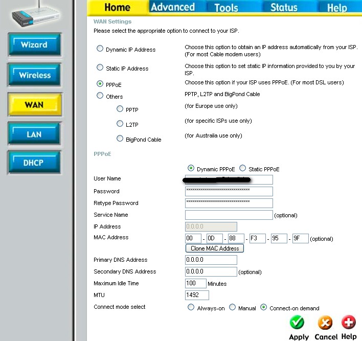 kennt zufällig einer die Einstellungen, die ich im Router (D-Link DI-614+) vornehmen muss, damit Tiscali DSL funktioniert.