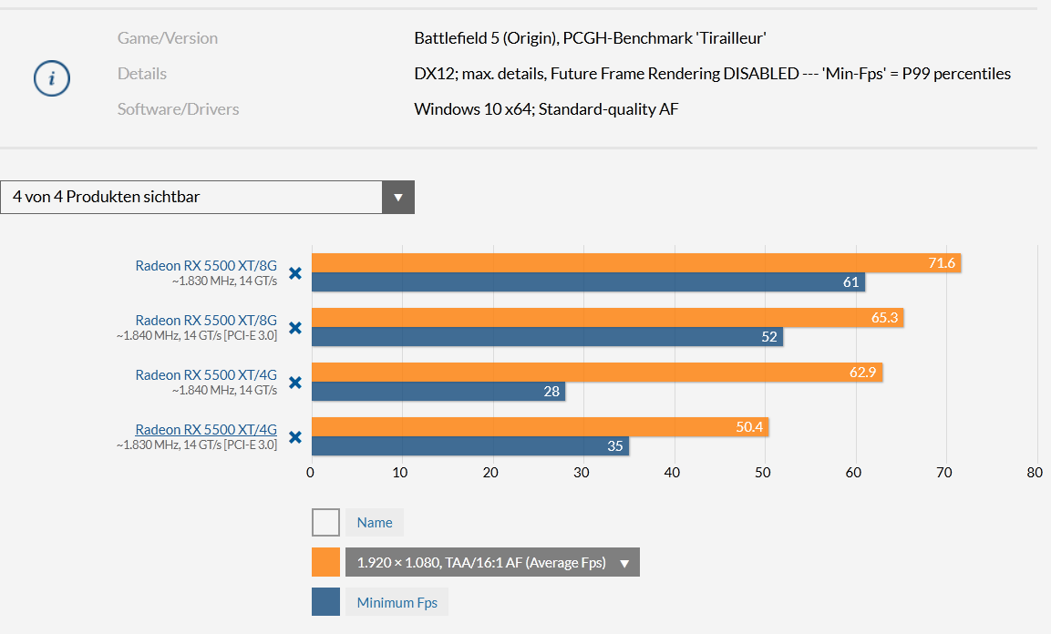 Zitat des 4GB 5500XT Tests aus der PCGH Website: