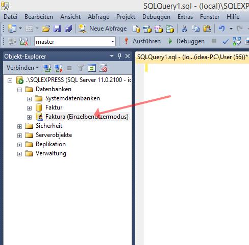 der Einzelbenutzermodus aber das sollte nicht sei! Wie kann ich es SQL Managent Studio