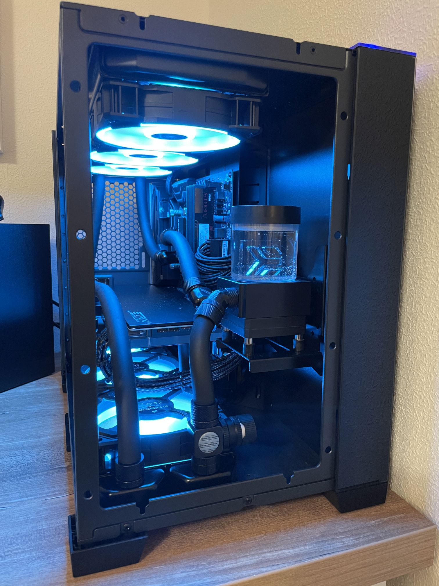 Ich hatte jetzt alle Teile zusammen und hab heute meinen PC umgebaut. Die Pumpe hab ich jetzt auf 60% laufen, aber höre sie immer noch etwas. Macht ein relativ unangenehmes Geräusch leider. Da muss ich noch mit den Einstellungen spielen, aber insgesamt bin ich ziemlich begeistert. 15 Minuten Cyberpunk und die GPU ist bei 43°C und die CPU bei 55°C.
