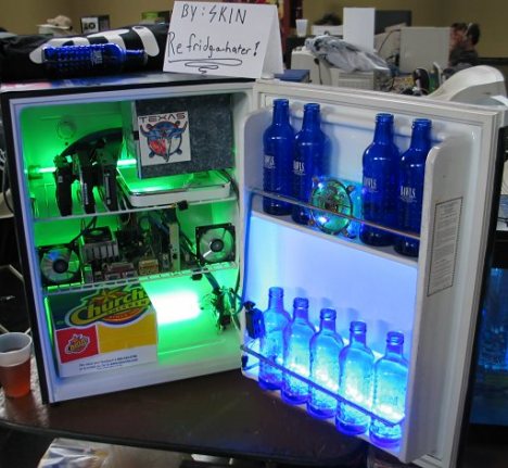 Das sieht zwar witzig aus. Ist aber absolut nicht empfehlenswert. Wenn das Kondenswasser erst einmal aufs Board tropft ist alles vorbei.