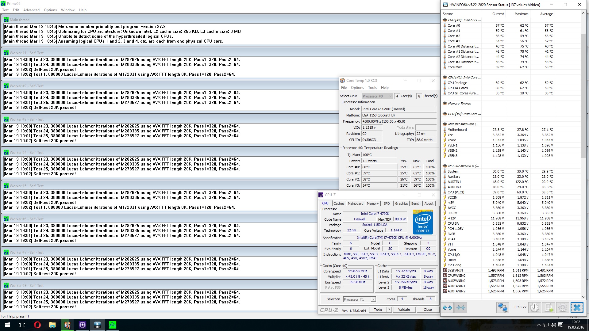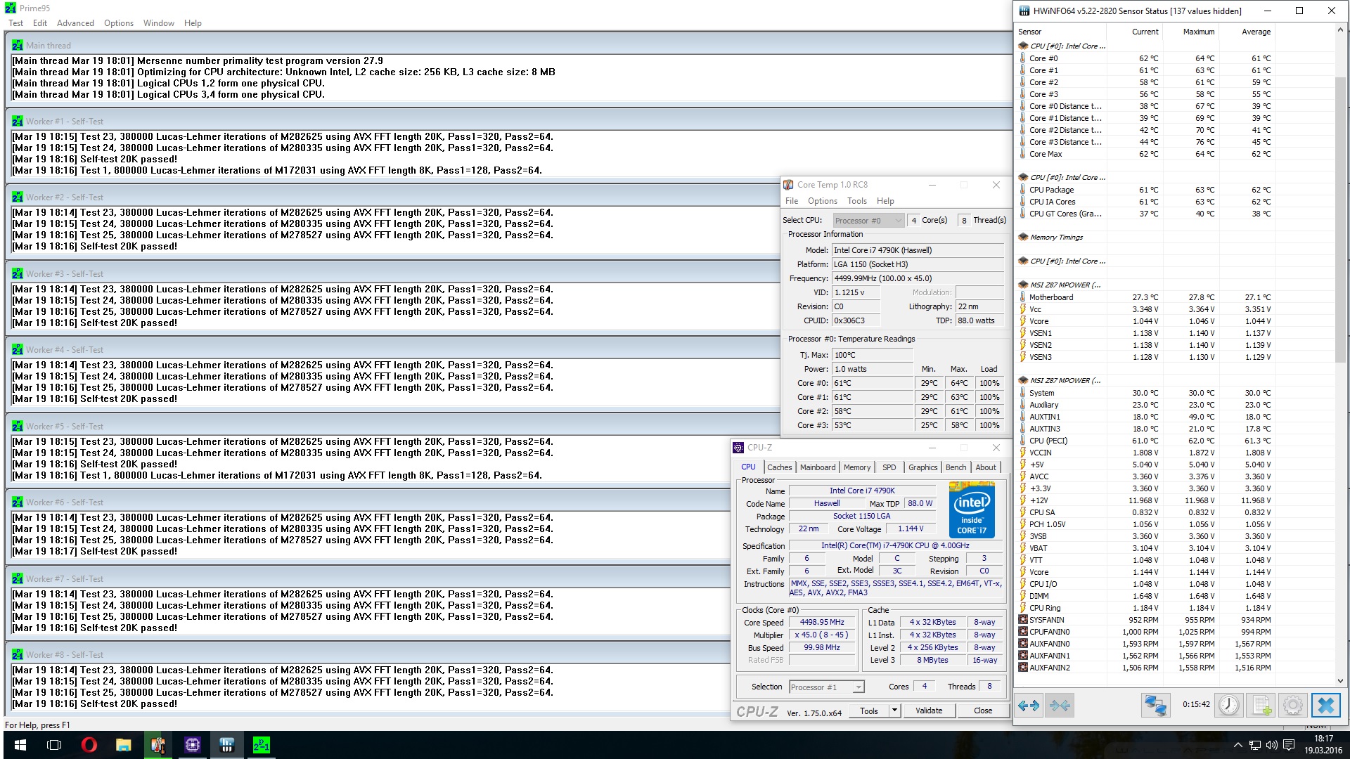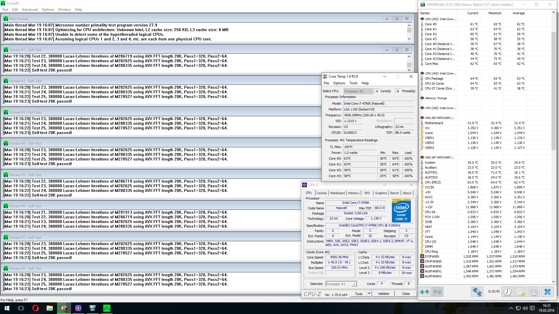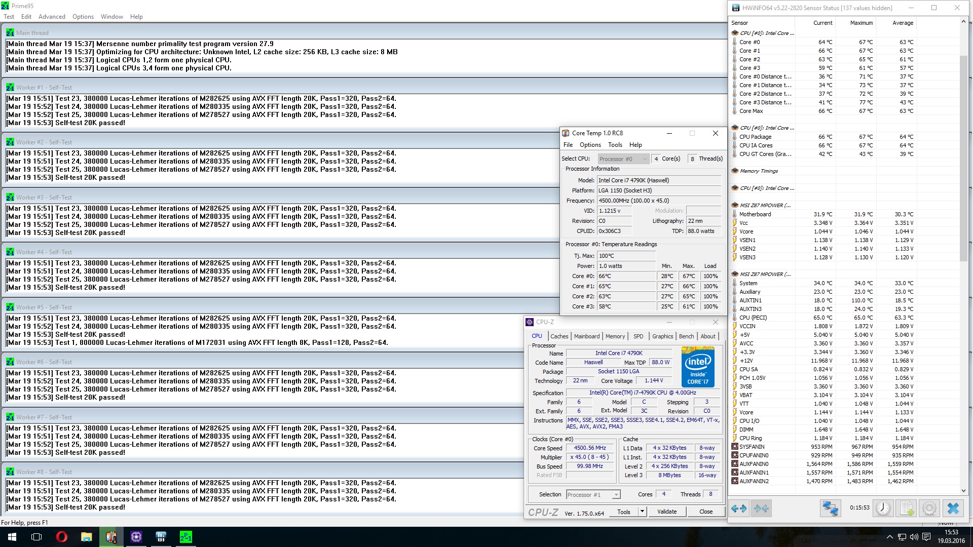 Ich benutze CoreTemp zum Auslesen der maximalen Temperatur und hwinfo64 zum Ablesen der Durchschnittstemperatur über die Dauer des Prime-Runs.