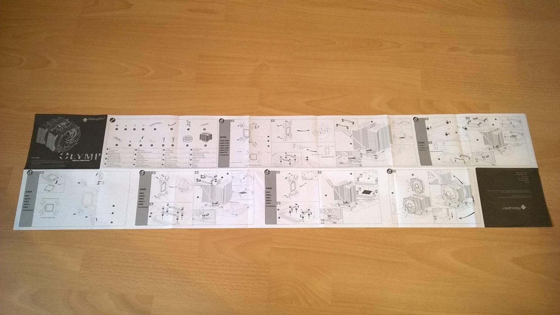 Die Montageanleitung kommt klein daher, ist ausgeklappt dann aber fast so lang wie mein Tisch. Hier hätte man vllt auch etwas mehr in die Höhe, statt nur in die Breite drucken können. Zum fotographieren hab ich das Ungetüm dann einfach erstmal auf den Boden gelegt:
