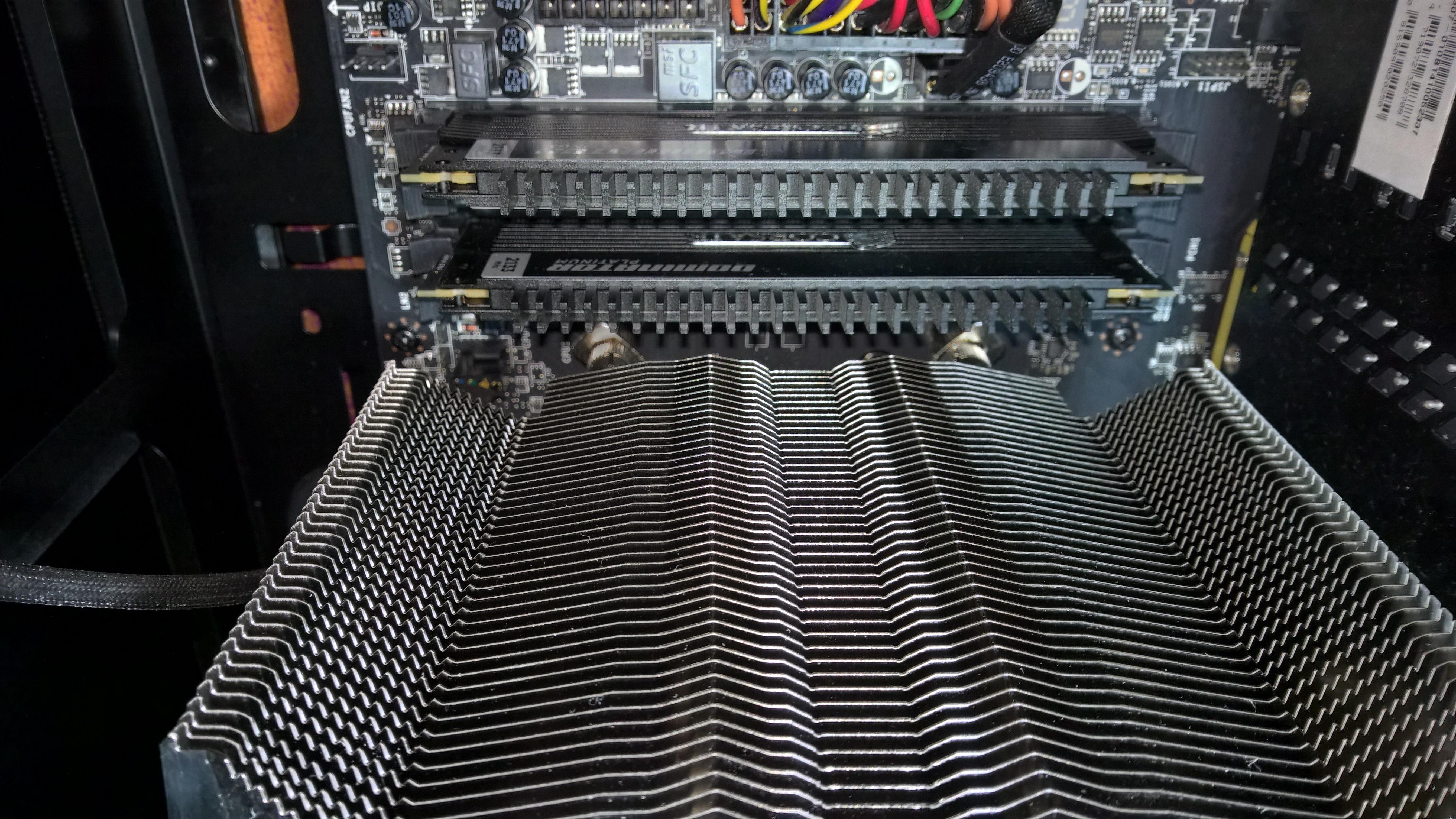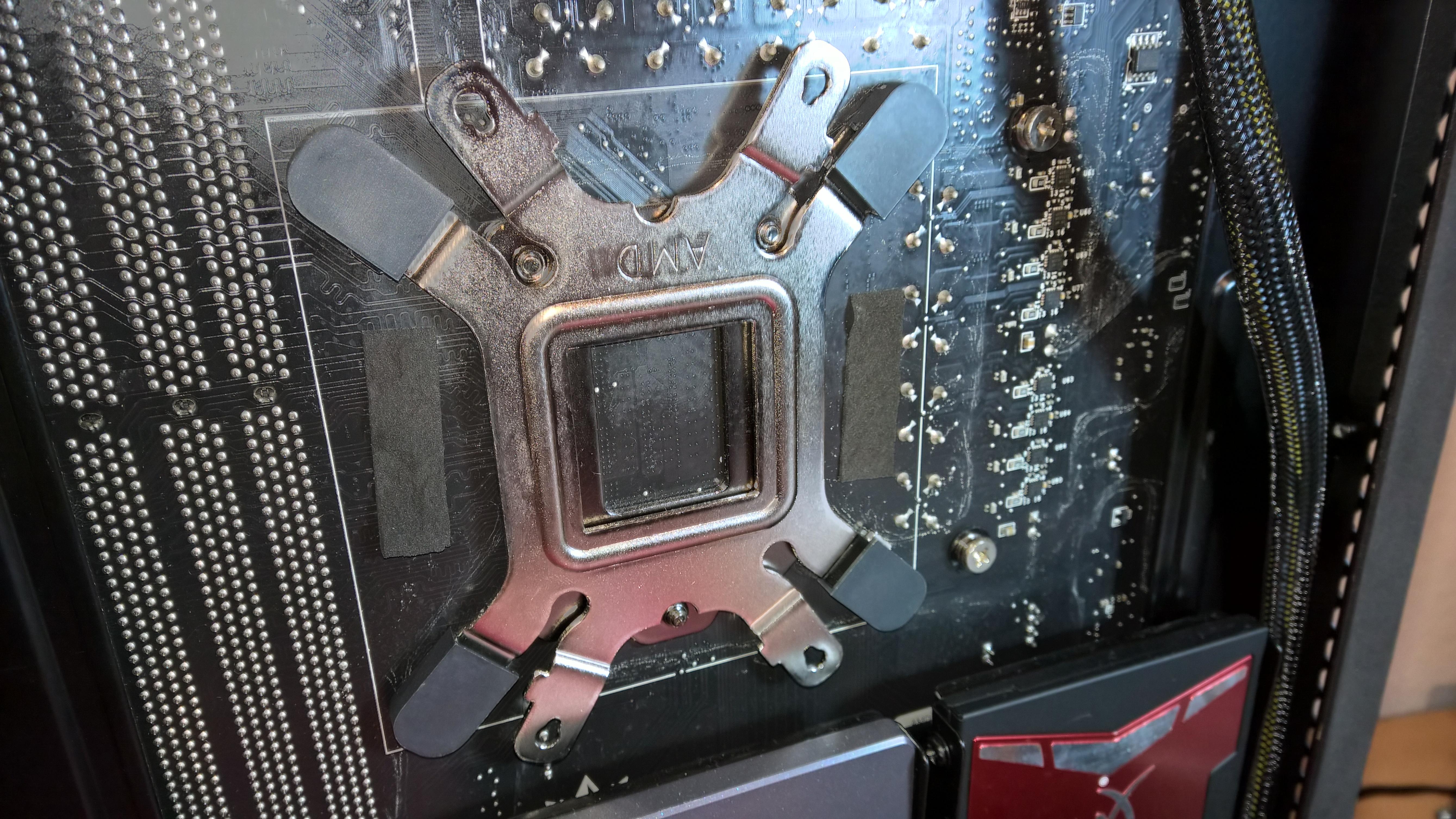 Wenn das Mainboard nicht schon im Gehäuse ist, stellt das vermutlich kein Problem dar - mir blieb aber keine andere Wahl als den Kühlkörper nochmal abzunehmen, den Balken aufzukleben und es von vorne zu probieren.
