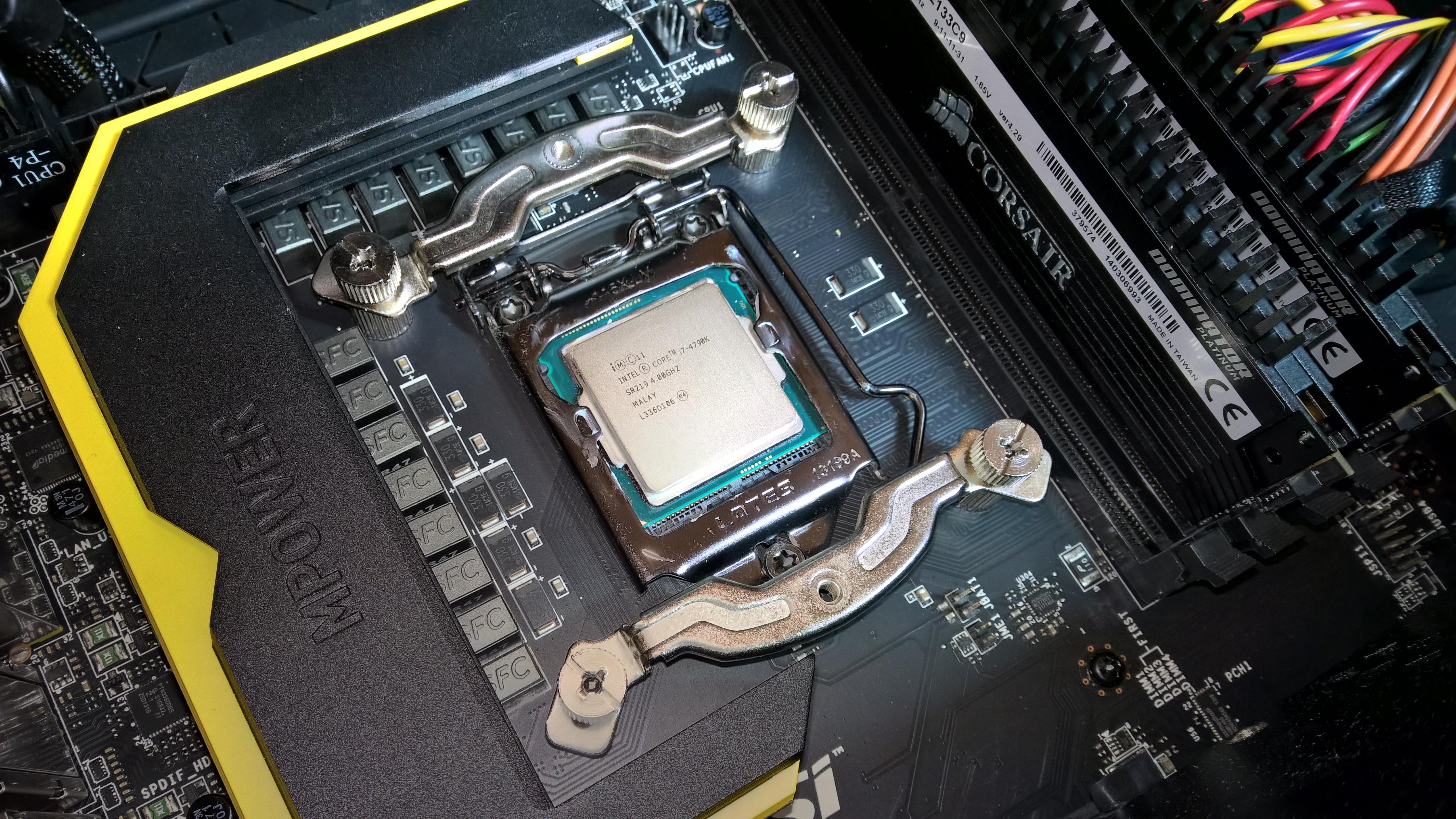 Der zu befeuernde... nein moment... der zu kühlende Prozessor ist ein geköpfter i7-4790K.