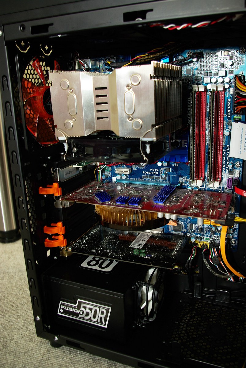 Den Kühler habe ich aufgrund meines neuen Gehäuse so montiert (oben sind 2 sehr starke 140er) :