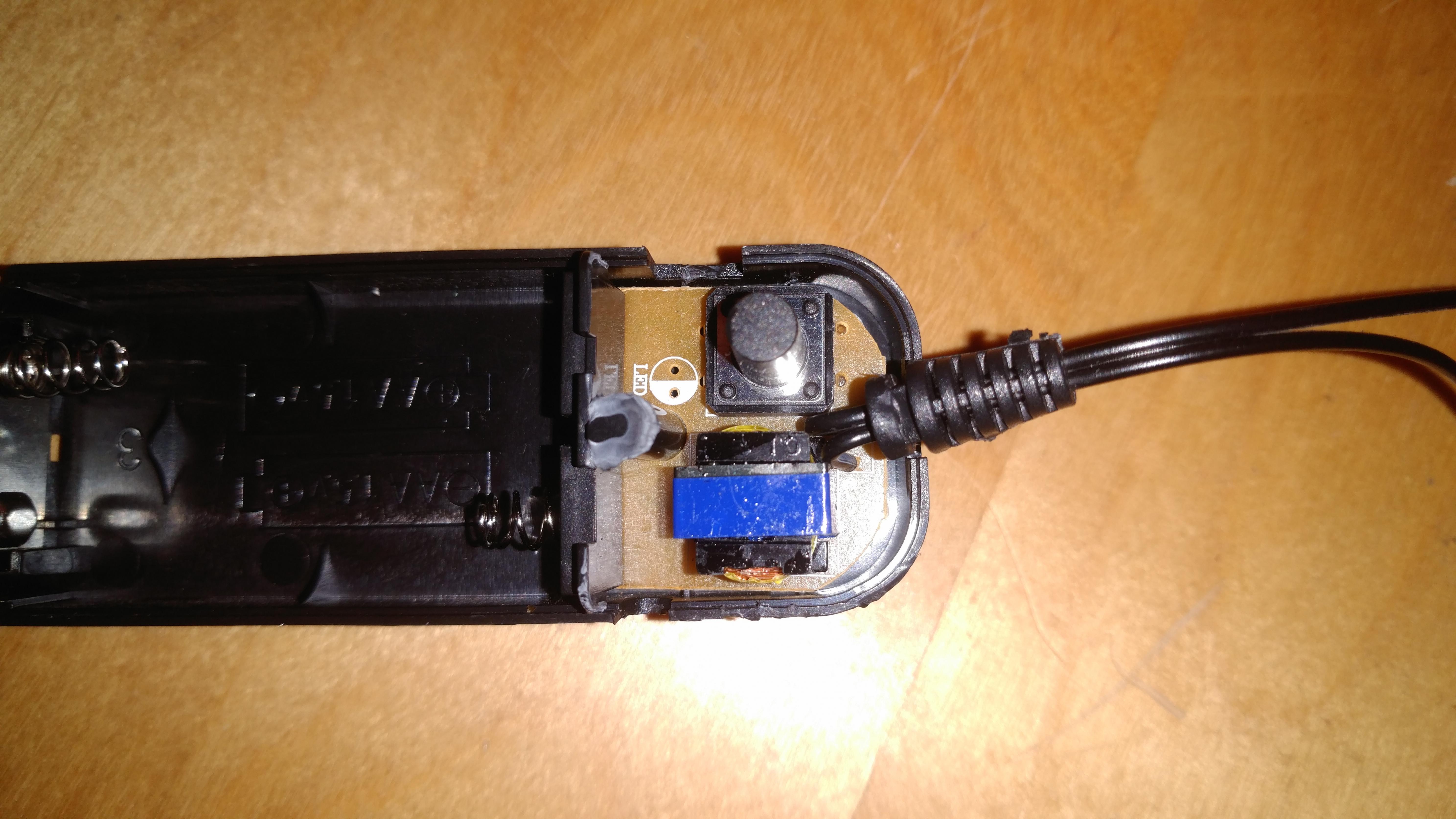 12V gehen rein und 3V (gemessen) kommen raus. Leider leuchtet das Kabel nicht, wenn ich es anklemme (Polung kontrolliert). An den 2 AA 1,5V Batterien funktioniert es weiterhin.