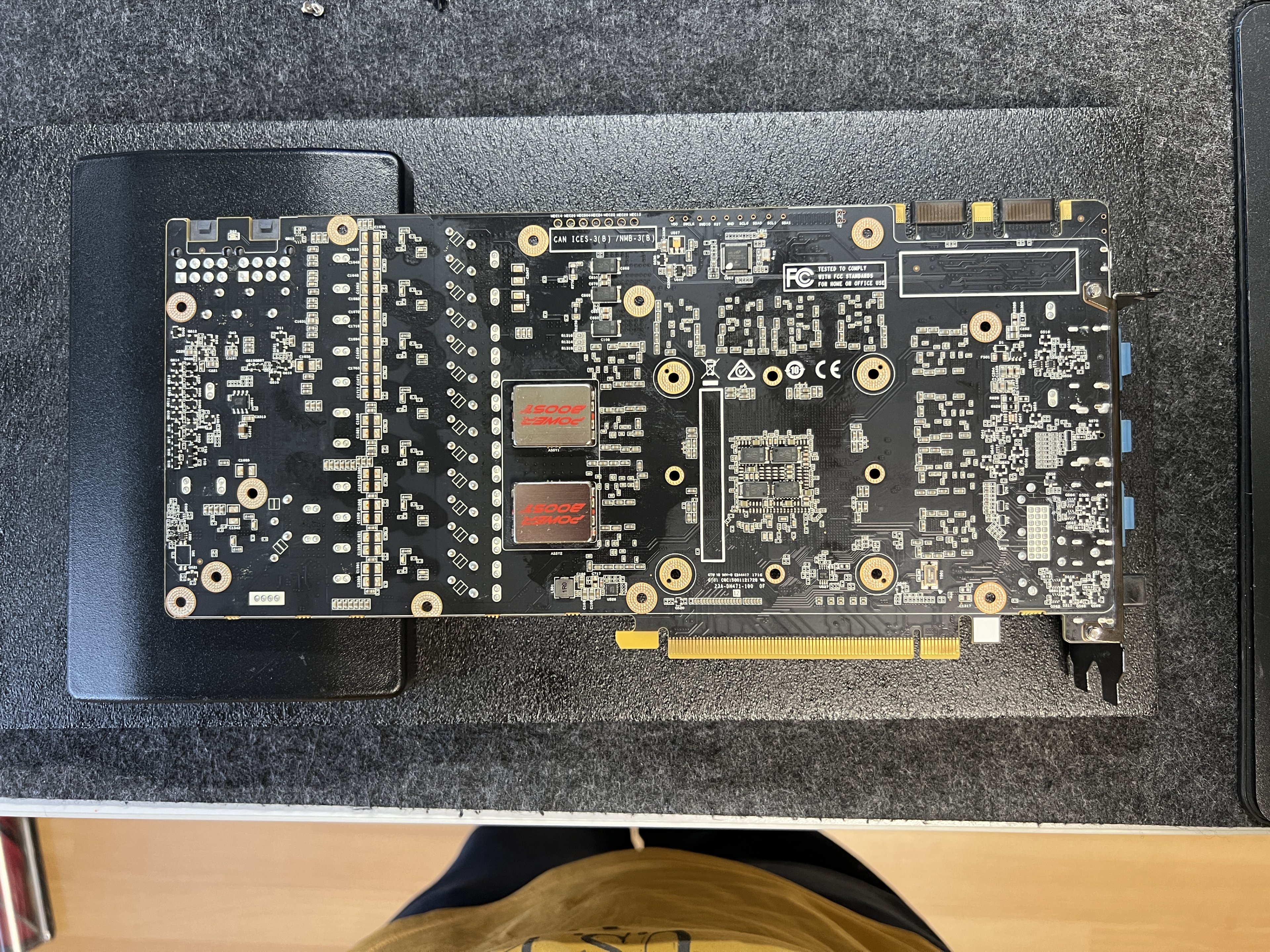 Ich habe die Karte einfach mal auseinandergenommen, die Stellen wo die Wärmeleitpads drauf waren sehen nicht wirklich schön aus. An ausgelaufenen Weichmachern oder sowas kann es nicht liegen das die Grafikkarte ständig bei Spielstart crasht?