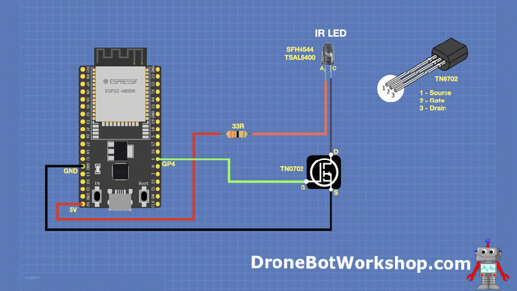 Bisher nutze ich eine andere Schlatung mit einem 2N2222 die tut auch ok (47 Ohm zum Transistor vom 3,3V GPIO , 100 Ohm 5V+ zur Diode vom ESP32)