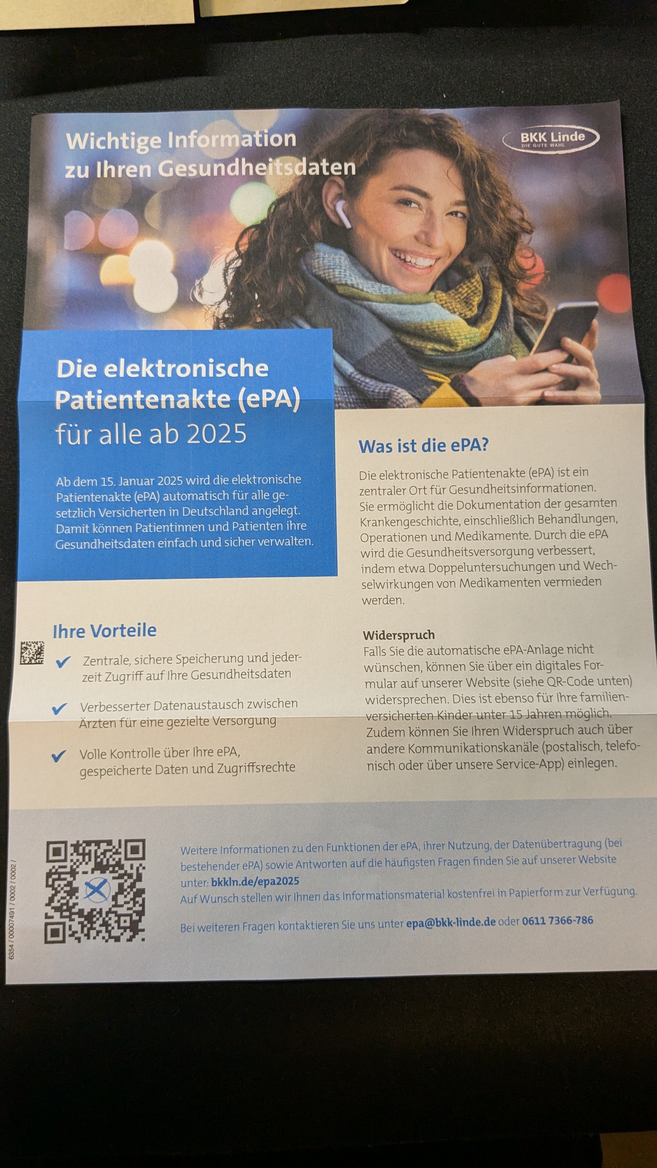 Aus diesem Grund habe ich der ePA widersprochen, da ich keinerlei Vertrauen in die involvierten Instanzen habe. Die Grundidee der ePA ist gut, doch Deutschlands öffentlicher Dienst befindet sich noch im Mittelalter und nicht im Digitalzeitalter.