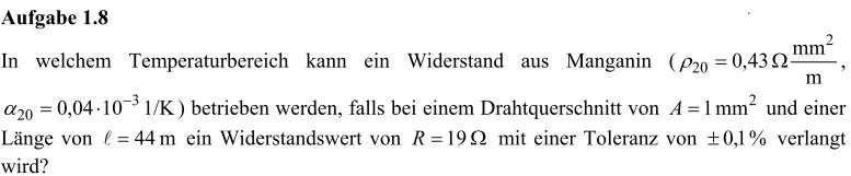 Tipp: Formel für Temperaturabhängigkeit des Leitungswiderstands + zulässiger oberer/unter Widerstand (1%) werden gebraucht.