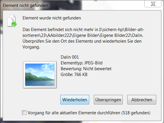 Wenn ich nach der Fehlermeldung die Ordner anschaue, bekomme ich aber auch keine Bildervorschau mehr angezeigt.