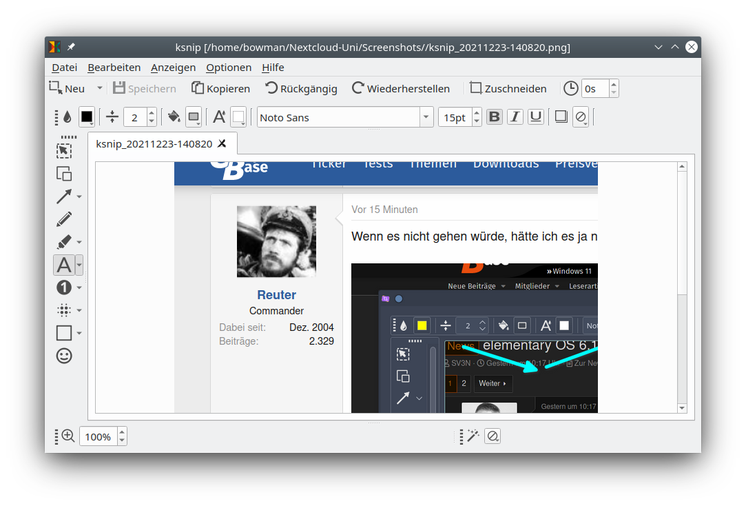 Was aber auffällt: Die Zeichnen-Tools sehen exakt aus wie die bei Ksnip. Kann es sein, daß Du eine neuere Version hast, bei der die Projekte fusioniert sind?