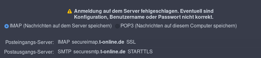 Jetzt möchte ich ein zweites EMail Konto mit meiner t-online.de Adresse einrichten und das funktioniert nicht.