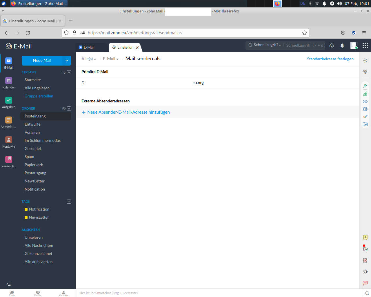 Ich blicke bei Zoho in der Gratis Version noch nicht durch (gratis ist eher mehr als Demo zu sehen, ich kann die wesentichen Dinge nicht probieren). Sollte es da Alias geben oder sind de Konten vielleicht nur Aliase. Es wird 1 Alias angezeigt, aber ich finde nichts zum Alias erstellen. Bei mir sieht es anders aus:
