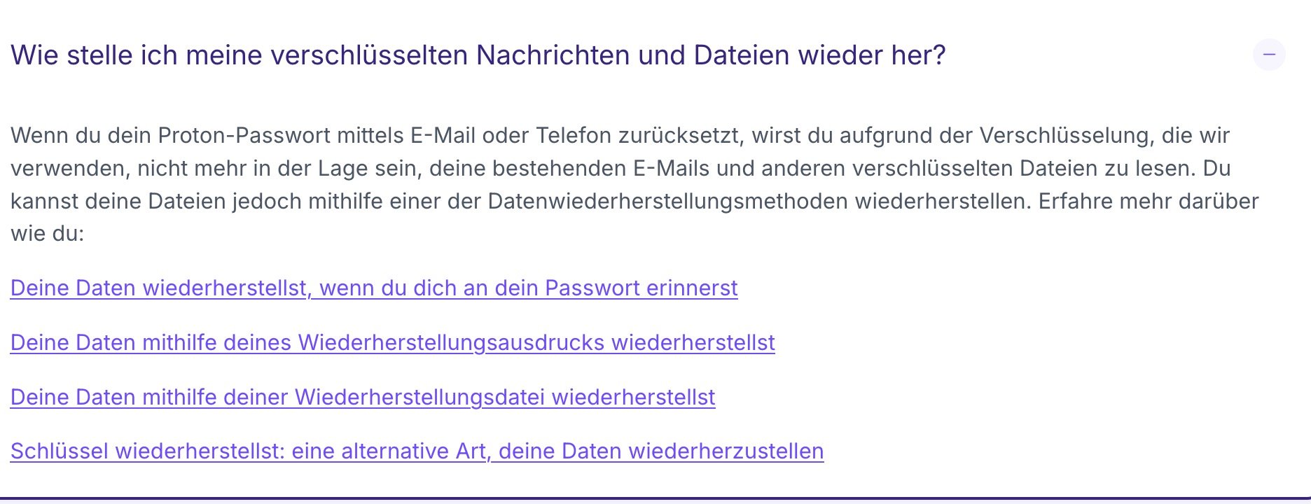 Allerdings ist hier, wie in der Anleitung beschrieben, zumindest im Kontext von Proton Mail der Inhalt bekannt, nämlich der Hinweis darauf, dass ein Inhalt für dich in Proton Mail zur Ansicht bereitsteht. Dieser Inhalt ist also nicht selbst Teil dieser Mail. Daher geht hier durch die Mail selbst erstmal kein ggf. wichtiger Inhalt verloren, sondern nur eine Zugangsmöglichkeit dazu.