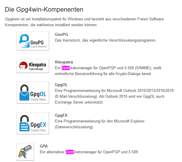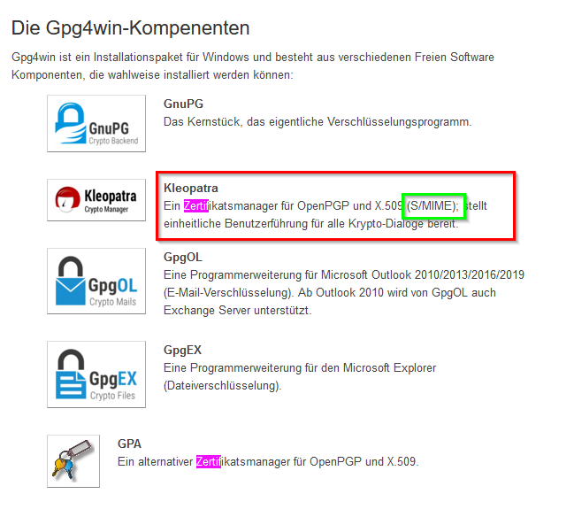 Das sind zwei unterschiedliche Zertifikate. Eins zum verschlüsseln, eins zum signieren... Das zum signieren brauchstg Du einmal, um dem Empfänger zu zeigen, ich bin es wirklich. Und eben zum anderen, um mit dem anderen überhaupt verschlüsselt schreiben zu können. Man muss sich zuvor signierte Mails schicken. Das tauscht das öffentliche Zertifikat aus.