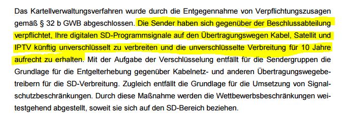 Das ist deine exklusive Interpretation, alle anderen lesen was dort steht, dass sie noch weitere 5 Jahre nicht ihre SD Programme verschlüsseln dürfen
