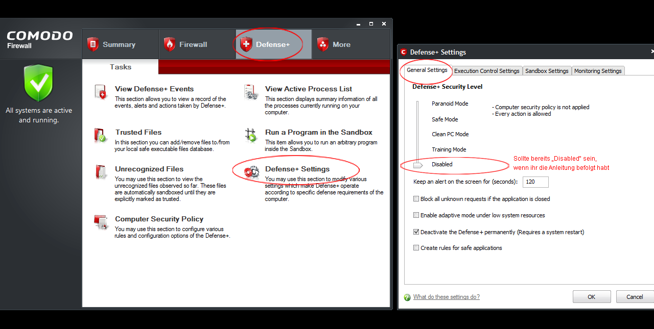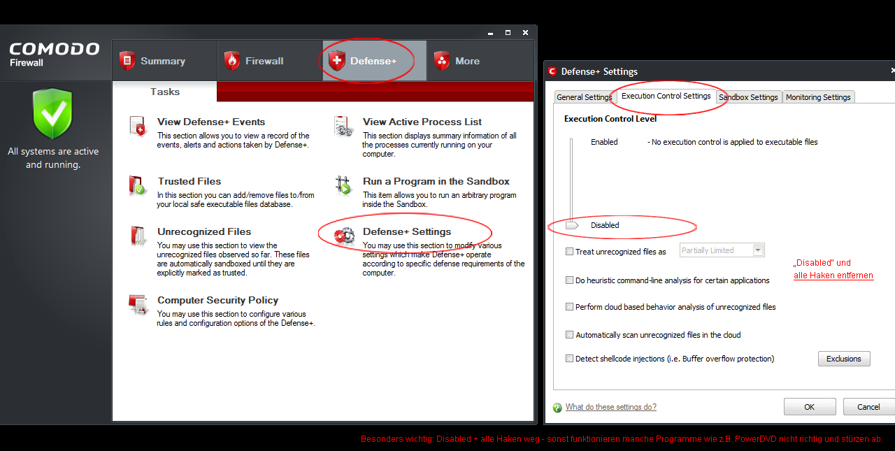 Diese wird nämlich nicht automatisch deaktiviert, selbst wenn man Defense+ bei der Installation weglässt und kann bei einigen Programmen wie PowerDVD zu Problemen und Abstürzen führen.
