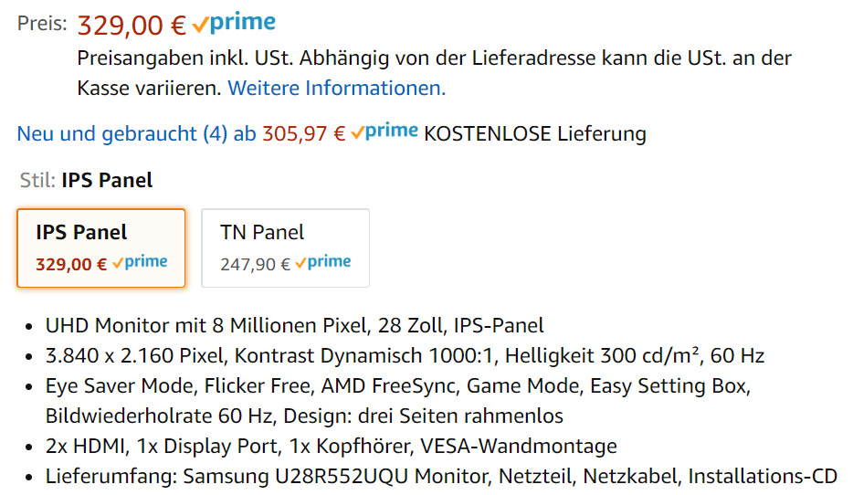 - IPS panel (wegen gutem Blickwinkel)
