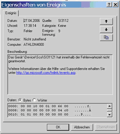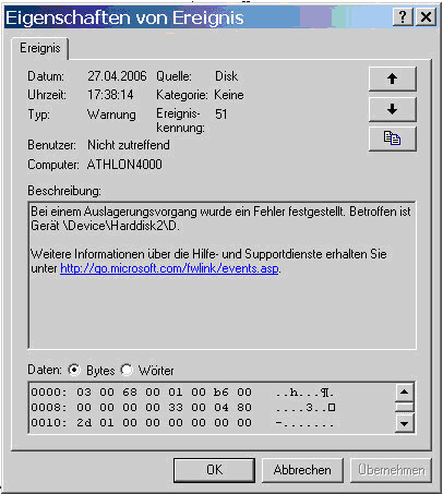 Seit diesem Vorfall kontroliere ich bei jedem merkwürdigen Festplattengeräusch die Ereignisanzeige, ob sich eventuell etwas andeutet, denn mit einem Programm, das die SMART Werte ausliesst, wurden "keine" Fehler angezeigt !