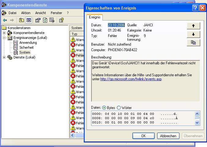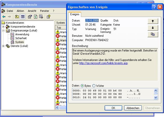 Ja die fehler sind nahezu identisch. Aber es ist nicht die platte mit meinem emule dl sondern eine (schmerz) Samsung 250 GB Platte wo windows Vista drauf ist und noch ein paar andere dinge aber ich werde sie mal abklemmen und mal schauen was so passiert