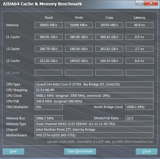 2400MHz mit CL10. 58000MB/s lesend.