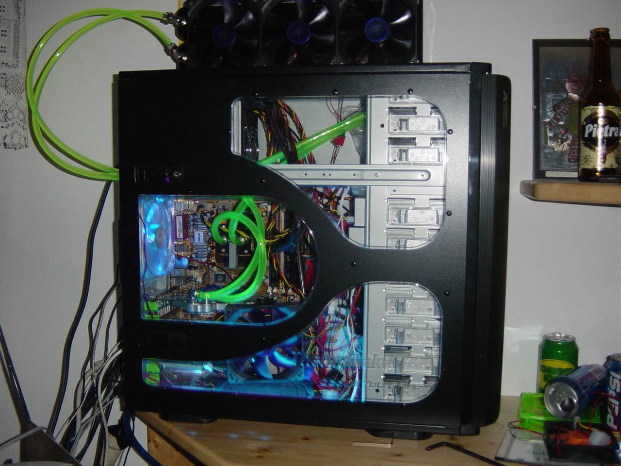 die Luft die im Radiator ist habe ich glaubich schon herausgebracht- indem ich den Radiator unter die Höhe der Pumpe gehalten habe und ihn hin und her geschwenkt und geschüttelt habe bis keine Luftblasen mehr herauskamen ...