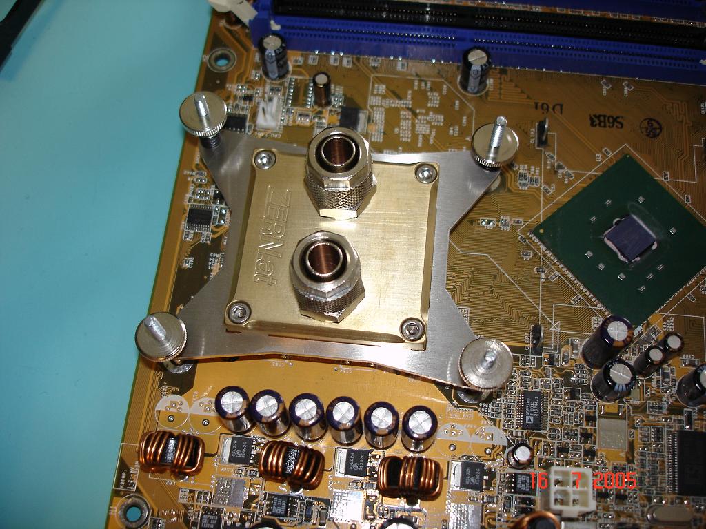 Nun gut, jedenfalls sitzt der NB Kühler nicht allzu fest auf dem Chip. Dadurch habe ich eine komische Temperaturverteilung (NB 44° / CPU 33°). Ich bin zuversichtlich dieses Problem bald in den Griff zu bekommen, da auch die Jungs von Zern ganz gut drauf sind.