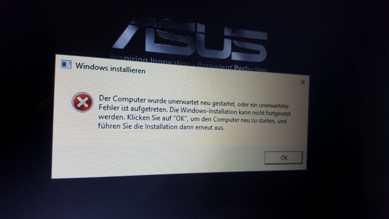 Fehler ist aufgetreten. Die Windows-Installation kann nicht fortgesetzt