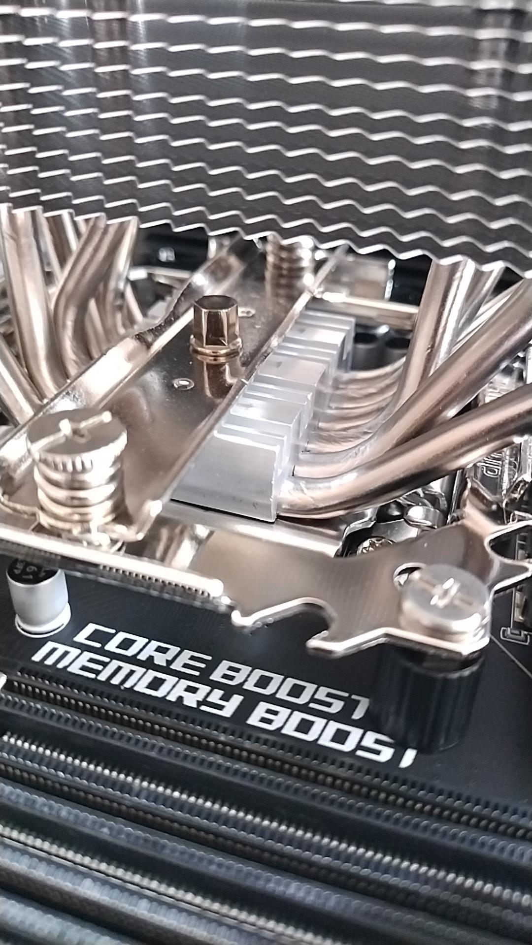 Das hat auch grundsätzlich gut funktioniert, jedoch fiel mir auf, dass die Form der Kontaktplatte des Kühlers irgendwie um genau 90° gedreht zu sein scheint, um wirklich exakt zu passen. Da meine Recherchen ergeben haben, dass bereits mehrere Menschen diesen Kühler (erfolgreich) auf diesem Sockel montiert haben, war ich mutig, habe die CPU mit Wärmeleitpaste versehen, den Kühler befestigt und im Anschluss dann doch wieder entfernt, weil ich mir zusätzlich noch eingebildet habe, dass die Kontaktplatte auf der CPU-Spange aufliegt.
