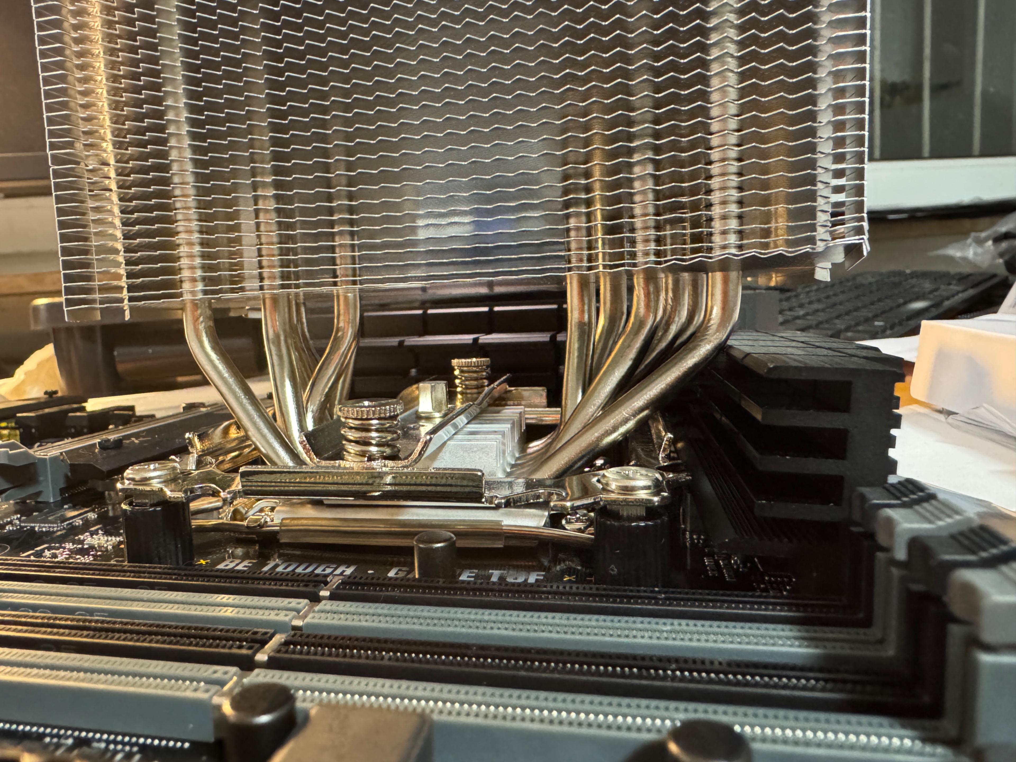 Habe mir gestern einen PC nach der CB Kaufempfehlung zusammengestellt. Habe festgestellt, dass der Endorfy Fortis 5 Kühler nicht ganz auf das ASUS TUF GAMING B760-PLUS passt. Die Heatpipes drücken gegen die Board Kühlelemente (siehe Bild) Das habe ich als Feedback im Thread für die Zusammenstellung bereits gepostet.
