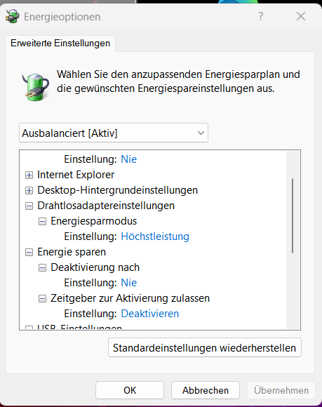 -Energiesparplan Ausbalanciert probiert --> Rechner gehen in Standby und sind aus zb Homeoffice nicht erreichbar.