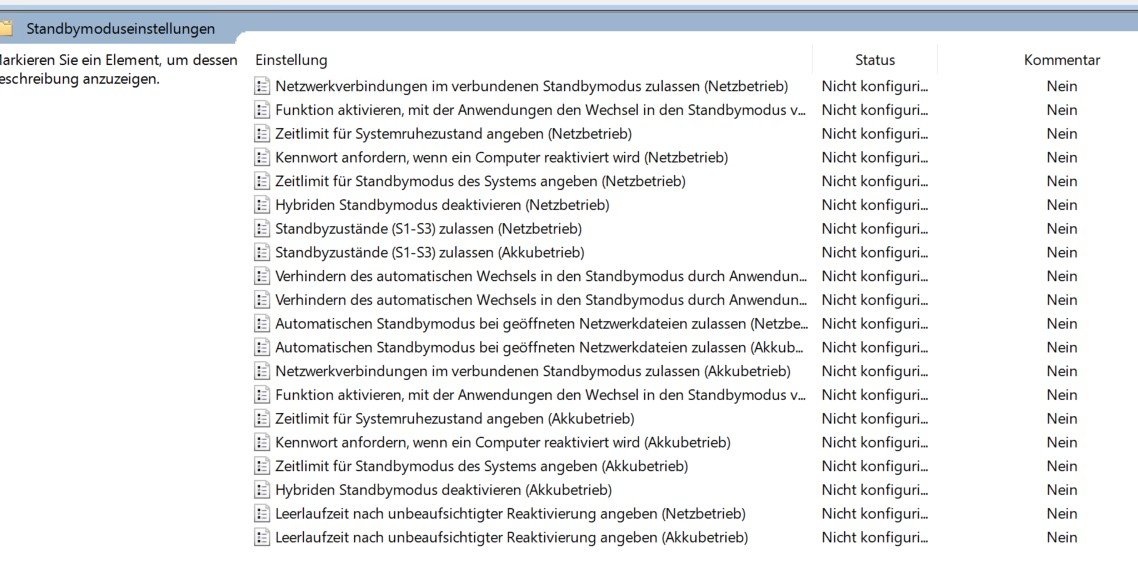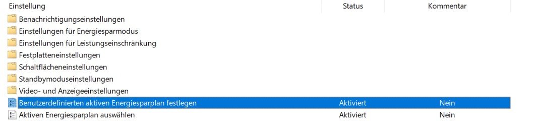 -Aktiven Energiesparplan auswählen (Höchstleistung angepasst und GUID aus angepassten PC ohne greifender GPO) eingetragen --> Trotzdem StandBy