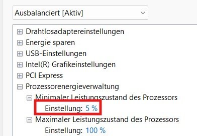 Man merkt aber an den aktiven Lüftern obwohl einfacher Officebetrieb die Rechner unnötig heiß sind und das liegt am Wert" Minimaler Leistungszustand des Prozessors 100% (anstatt 5% bei ausbalanciert)" und ich würde gerne diesen Wert alleine anpassen.