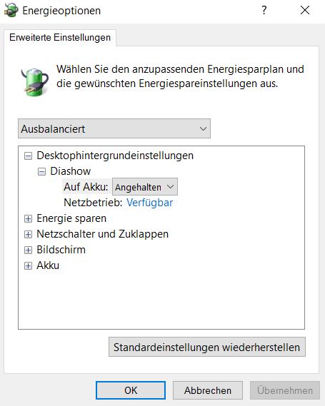 Seit einiger Zeit wundere ich mich über die sehr spärlichen Auswahlmöglichkeiten unter meinen Energieoptionen auf meinem Notebook.