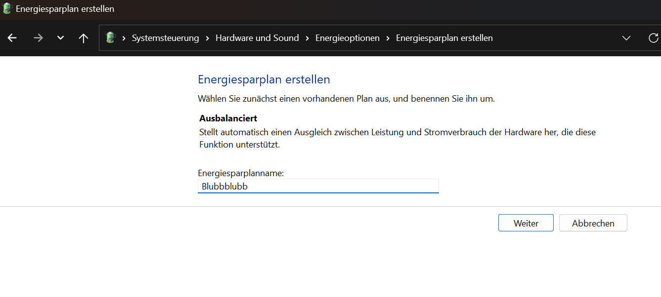 Ich hätte natürlich gerne das Profil "Ausbalanciert" beibehalten, weil es im Akkubetrieb schon ein paar Watt Unterschied macht. Ich hätte nur gerne die eine Einstellung, die für diesen Lag verantwortlich ist, angepasst.