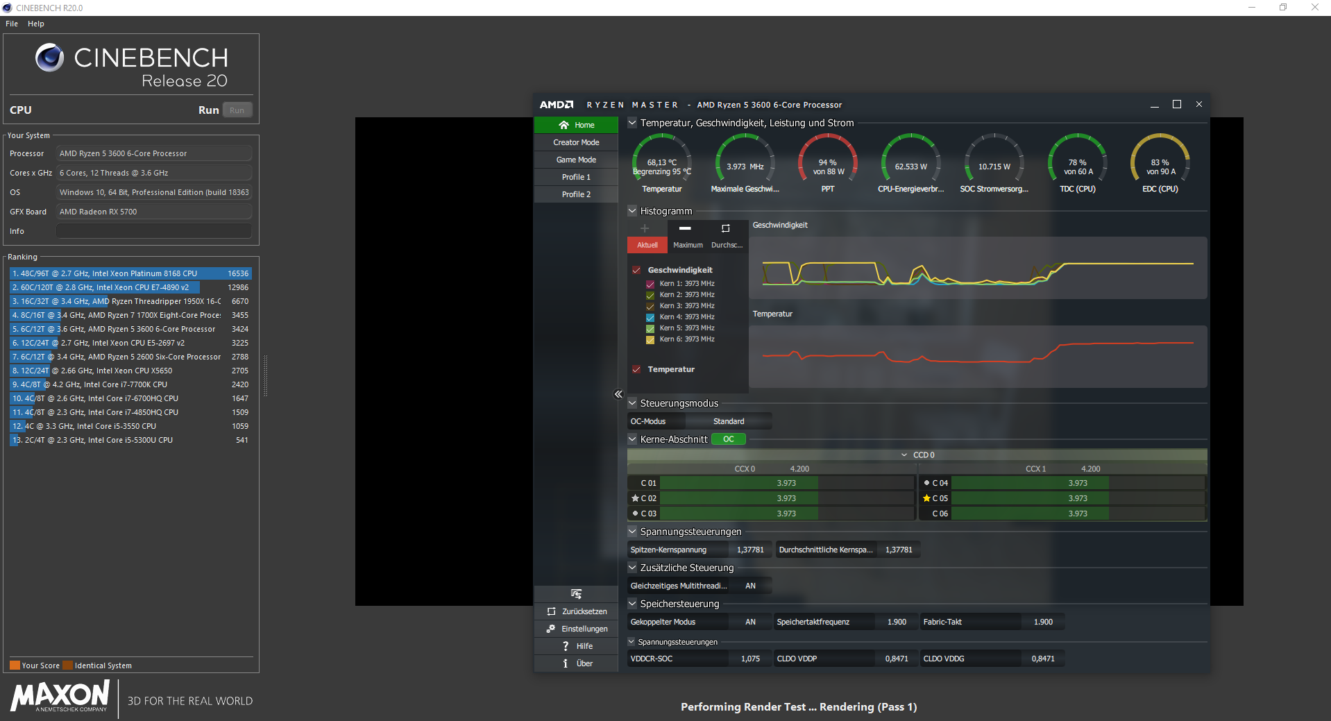 Im Bild hatte ich Cinebench20 laufen lassen.