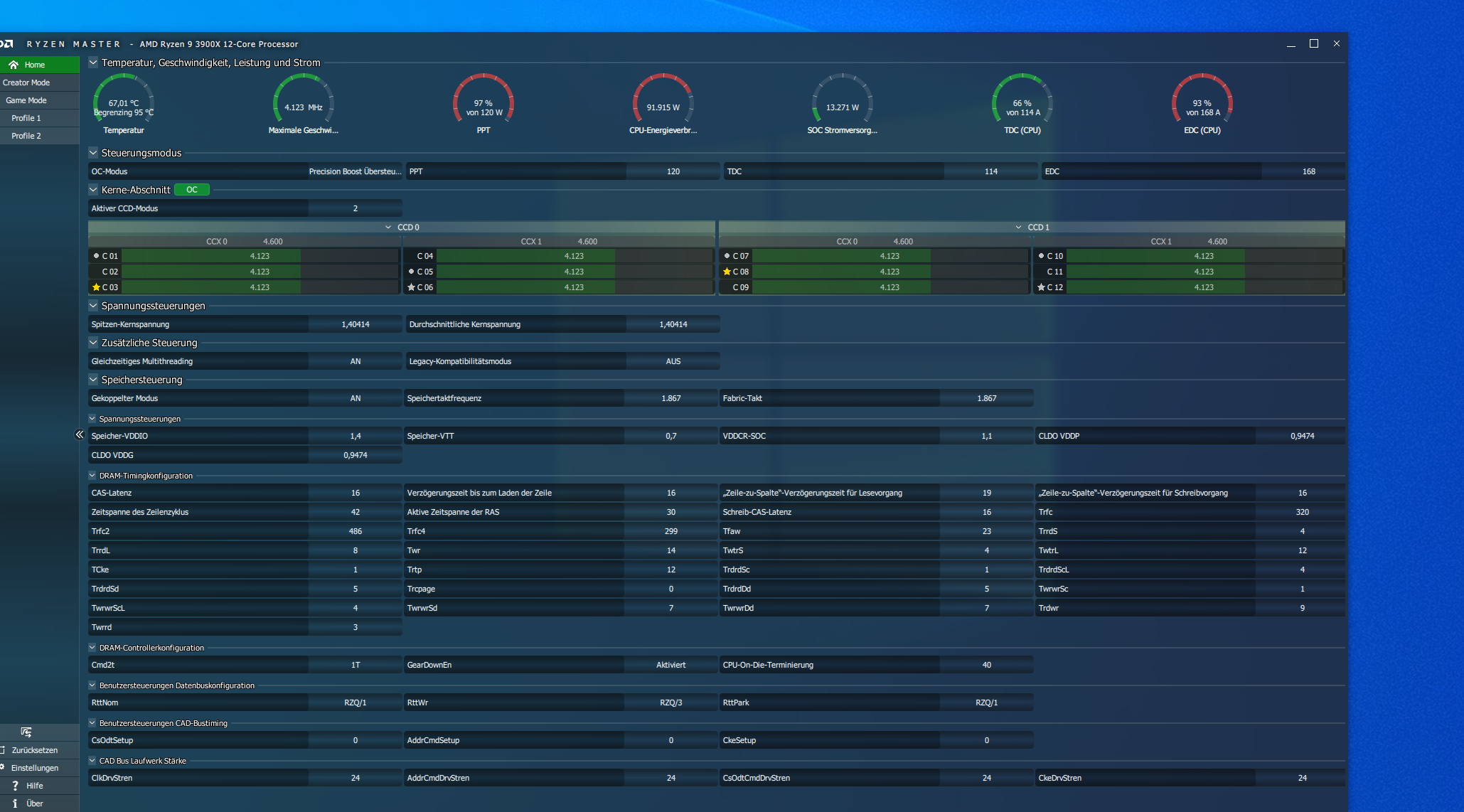 Stellt eurer gewünschtes UV ein und lasst die Tests eurer Wahl laufen und lasst nebenbei Ryzen Master mitlaufen.