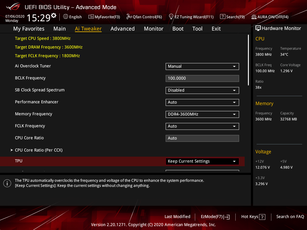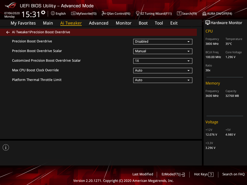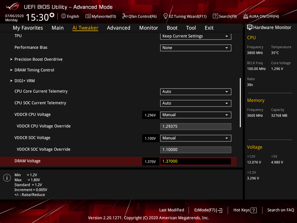 Hier sind meine Settings, RAM-Settings lass ich aussen vor, hab die Crucial BallistixSport 3000 empfehlungen hier aus'm Forum 1zu1 übernommen und die laufen perfekt mit 3600 bei mir!