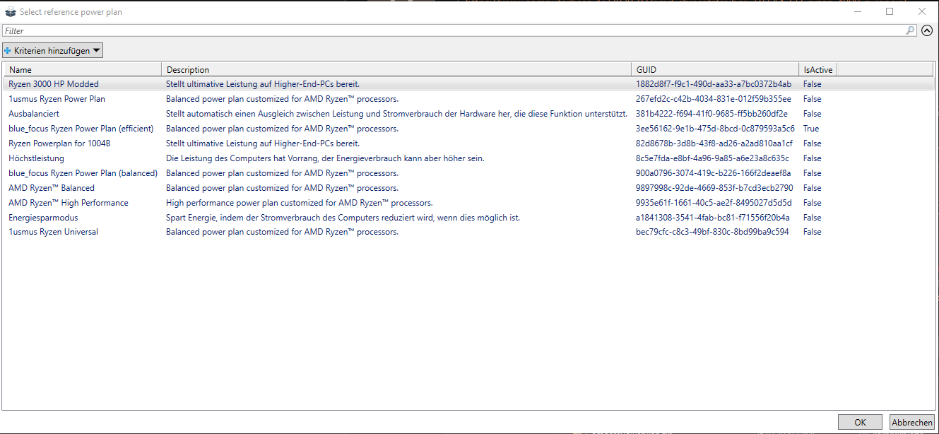 . Hab die Energiesparpläne von 1usmus ryzen gelöscht und nutze derzeit den Ausbalanciert von Windows. War gerade dabei V4 zu "installieren". Ich dachte ich schreib schon mal ein Feedback wie es mir bisher ergangen ist.