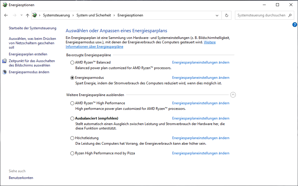 Die Basis ist der Ryzen High Performance Plan, nur hab ich dem beigebracht bei kleiner Last nicht wie bekloppt zu boosten.
