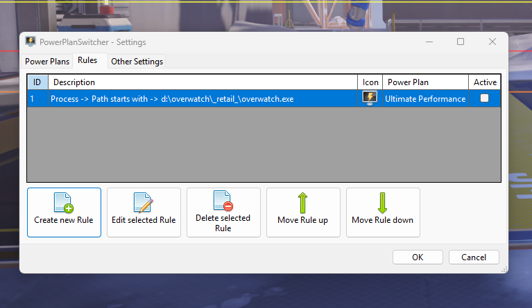 wenn ich nun unter Rules ihm ein (in meinem Fall) Spiel aus den activen Processen geben will inkl Ultimate Performance, dann sollte er ja meiner meinung nach auf den anderen switchen ohne dass ich aktiv noch was machen muss