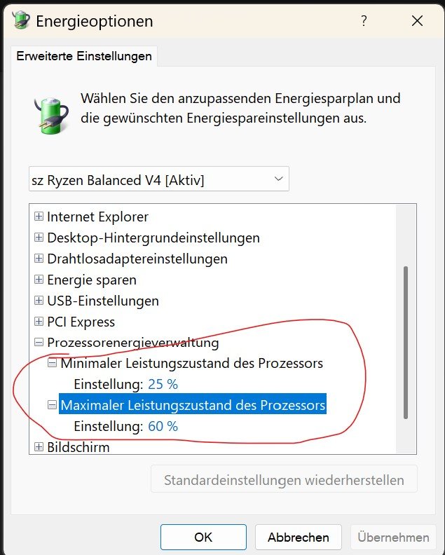 Also ich nutze zum Zocken Ausbalanciert und für zum Surfen nutze ich sz Ryzen Balanced V4