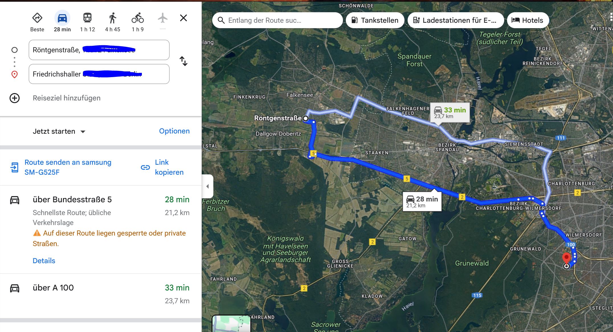 Ja, Außenbezirk. Das dort die ÖPNV Situation schlechter als in der Innenstadt ist wundert mich nicht und selbstverständlich muss auch dort etwas strukturell passieren. Da Wegner und sein Kabinett aber Auto first macht, erwarte ich nicht so viel für ÖPNV und Rad.roket schrieb:aktuelles maps ergebnis siehe sceenrhot
